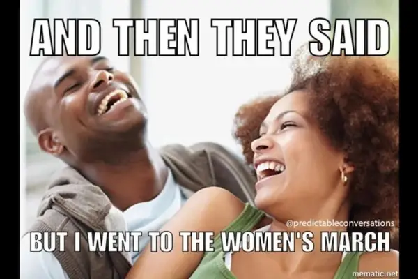 E então eles disseram, mas eu fui para a caminhada das mulheres