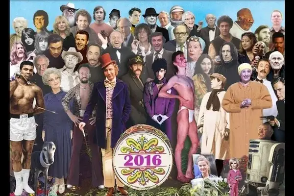 O tipo de diretor britânico Chris Barker usou o sargento. São apresentados a cobertura da pimenta para comemorar as celebridades extraordinárias que morreram em 2016. Os David Bowie, o príncipe e Muhammad Ali são apresentados.
