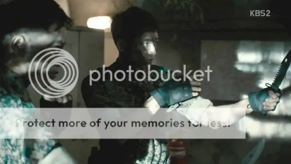 Depois de um olhar tenso, os soldados iniciam uma feroz luta de facas, com Shi-jin lutando contra o líder norte-coreano e seu camarada Dae-young fazendo malabarismos com os outros dois soldados inimigos. Eles estão em espaços apertados e a ação é rápida e poderosa, com ambos os lados aparentemente empatados.