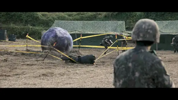 É dolorosamente aparente que o soldado LEE CHUN-HO ( Shin Hyun Soo ) é o único com uma cabeça sensata sobre os ombros. Embora ele reconheça claramente o quão terrível é essa ideia, ele é impotente diante da autoridade de seu superior. A explosão é disparada - e à medida que a fumaça se dissipa e a poeira assenta, a esfera alienígena começa a brilhar e a estalar ameaçadoramente.