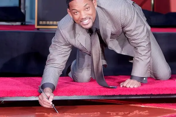 Smith recebe uma laje de concreto com a mão e é modelada no teatro chinês de Grauman em Hollywood.