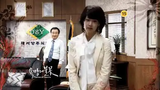 Notas 'Flames of Desire' é produzido pela rede regional Ulsan MBC. As filmagens também acontecerão em Ulsan, na Coreia do Sul. O título provisório inicial era 'Yeojaneun Ilsaenge Dan Han Bun Saranghanda/Uma mulher que só ama uma vez na vida'. As filmagens começam em setembro de 2010. 'Flames of Desire' assumirá o controle do MBC Sábado e domingo, horário das 21h45, anteriormente ocupado por 'Kim Su-Ro, The Iron King' e seguido por ' Você pode ouvir meu coração '2 de abril. Ator principal Yoo Seung Ho , que atualmente tem 17 anos, interpretará um adulto pela primeira vez. Seu personagem Kim Min-Jae tem 21 anos e é casado. Elenco Lee Ho-Jae Kim Hee Jung Cho Jin Woong Lee Se-Chang Parque Chan-Hwan Uhm Soo-Jung Yoon Sang Hoon Yoon Jung Sook Kang Joon Kyu Park Duk-Sung Canção Jin-Ho Yang In Sook
