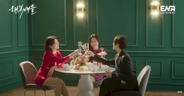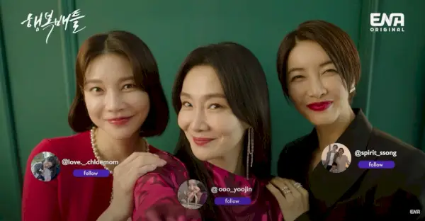 Indo direto para a guerra das mídias sociais que coloca amigo contra amigo em nossa história, o novo teaser começa com Song Jung-ah (Jin Seo-yeon), Kim Na-young (Cha Ye-ryun) e Oh Yoo-jin (Park Hyo-joo) em uma pequena reunião, vestidos com esmero e tilintando copos sobre sua mesa bem decorada.