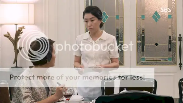Mamãe luta para esconder a taça de vinho para seu empregador quando Won aparece. Ele mal olha para sua madrasta enquanto ordena friamente que seu quarto seja limpo novamente. Madame Han ordena que uma garrafa de vinho substituta seja enviada para seu quarto, renunciando ao jantar: se eu conseguisse engolir alguma comida depois de sofrer essa indignidade, seria uma concubina. Então, talvez as alusões ao sageuk sejam intencionais.