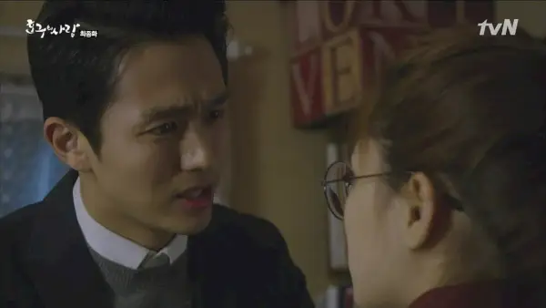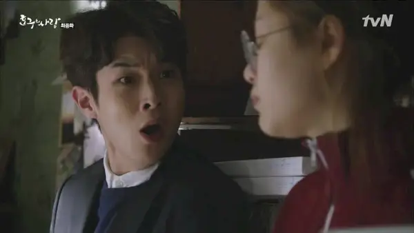 Uma vez lá fora, Kang-chul ainda está se recuperando de sua preocupação e raiva. Ele tenta gritar com Ho-kyung por sair com outro cara em vez dele, mas ele só consegue gaguejar um pedido de desculpas. Enquanto ele tenta explicar, ela calmamente diz para ele calar a boca e beijá-la já. O que ele faz. E ela o beija de volta. É um bom beijo.