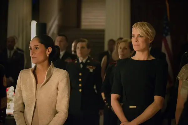 Claire usa suas roupas e seu poder feminino para intimidar. Existem várias maneiras de saber como elas podem aparecer no mundo e as pessoas os avaliarão com base em sua aparência, disse Harris ao Seriessense. Está sempre pronto para participar desse papel como presidente.