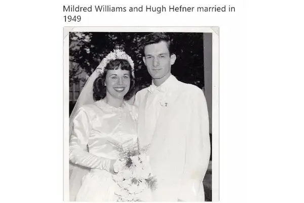 Hefner conheceu Mildred Williams na universidade e recebeu casado 1949. O casal teve dois filhos juntos. Williams havia anunciado que teve uma aventura enquanto Hefner serviu no exército. Ele disse: Foi o momento mais devastador da minha vida.