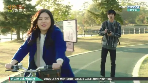Então Na-woo sobe na bicicleta e então eureka – ela começa a pedalar sem ajuda. Enquanto Jong-hyun luta com as configurações, ela grita: Oh Na-woo gosta de Hyun Jong-hyun! Ela olha para trás para dizer a ele: eu gosto de você!
