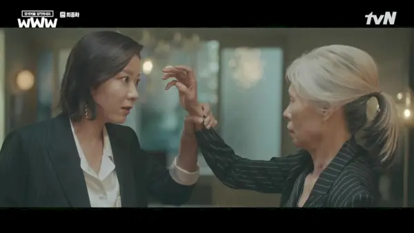A presidente Jang se levanta para dar um tapa nela, mas Ga-kyung para sua mão no ar. Ela pergunta se a presidente Jang está tão disposta quanto ela a se arruinar para derrubar seu alvo e, pela primeira vez, a presidente Jang realmente parece assustada. Ga-kyung diz que eles só têm um negócio entre eles: a pensão alimentícia de Ga-kyung.