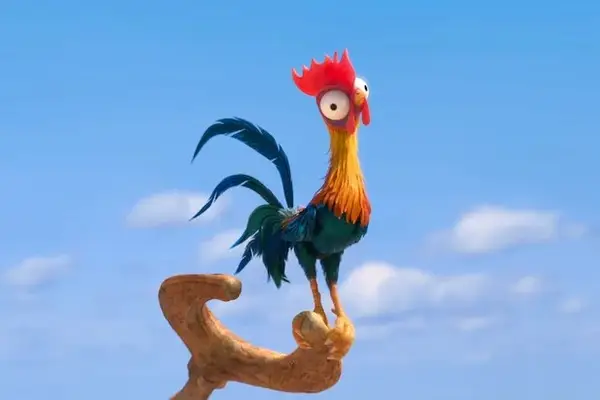 Heihei não é o frango mais inteligente do casaco de frango, mas compensa seus fracos coeficientes intelectuais, mantendo as empresas de Moana pelo mar durante sua longa jornada e consegue evitar Mauis na estrada.